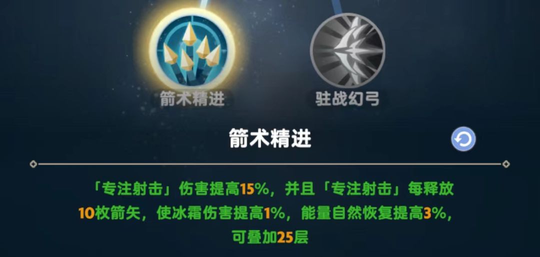 主要伤害来源为箭术精进的伤害随时间的成长叠加,并且能量恢复速度也会叠加;