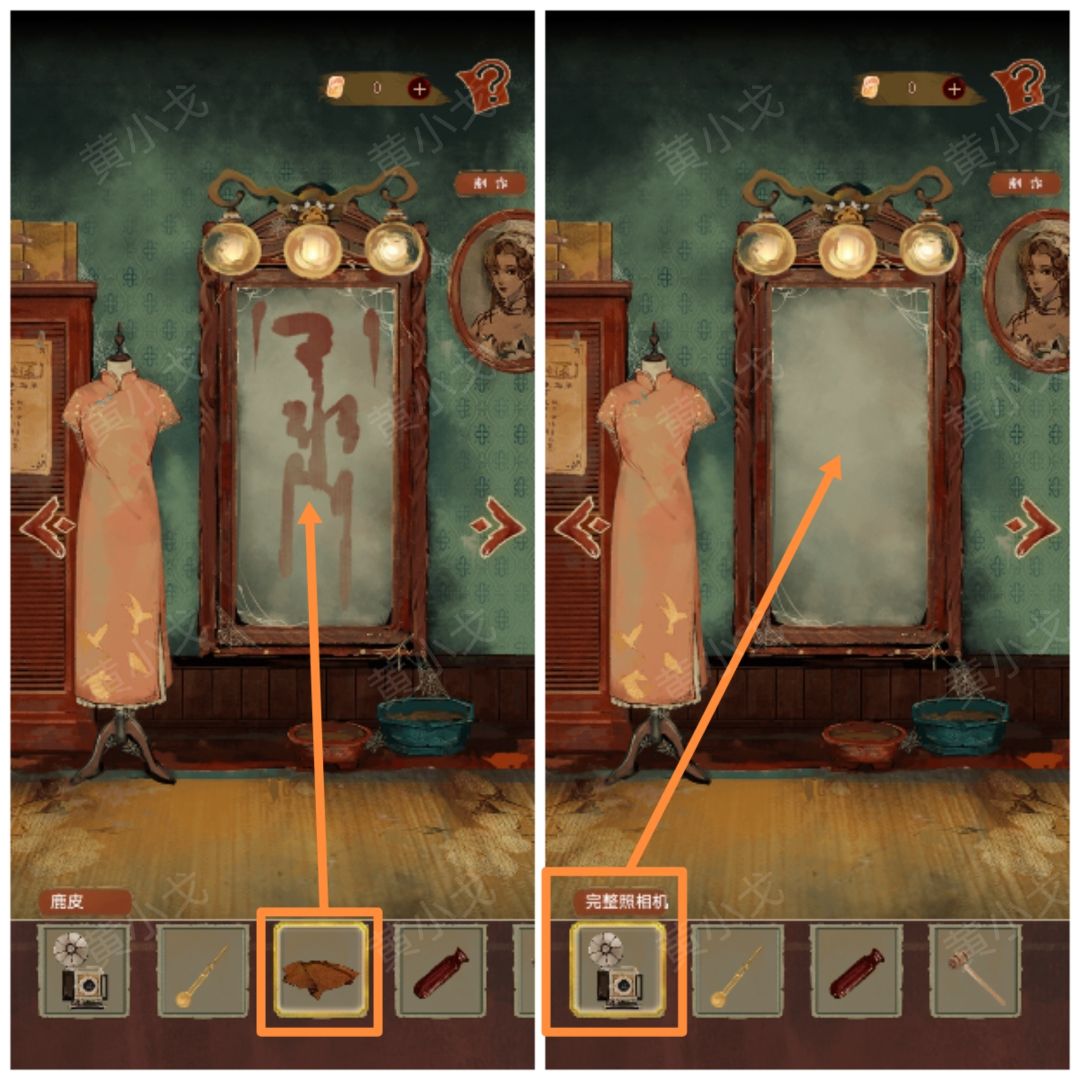 1.(镜子)用【麂皮】擦掉镜子上的痕迹;用【完整照相机】拍照
