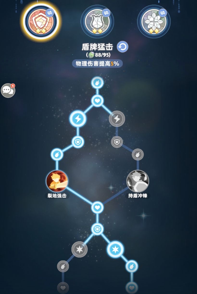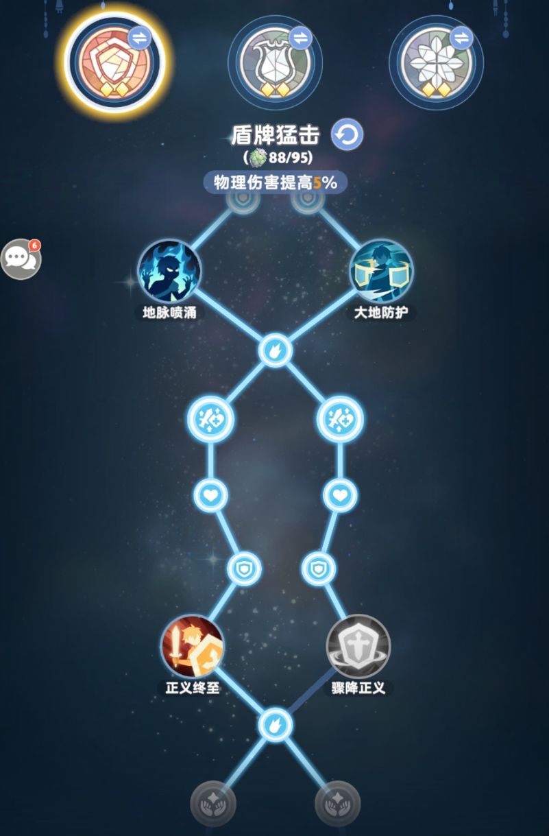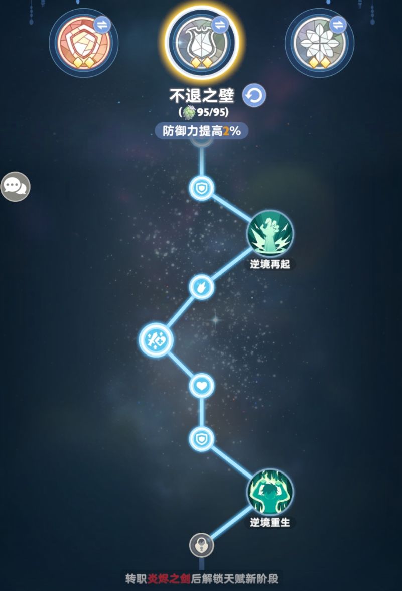 第二第三天赋选择【不退之壁】(95/95)和【触底升格】(23/95)
