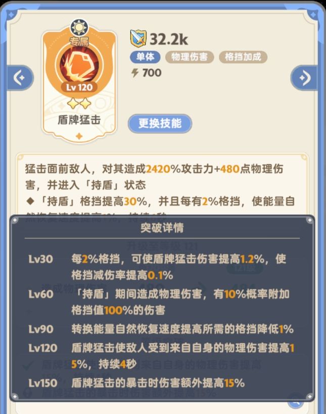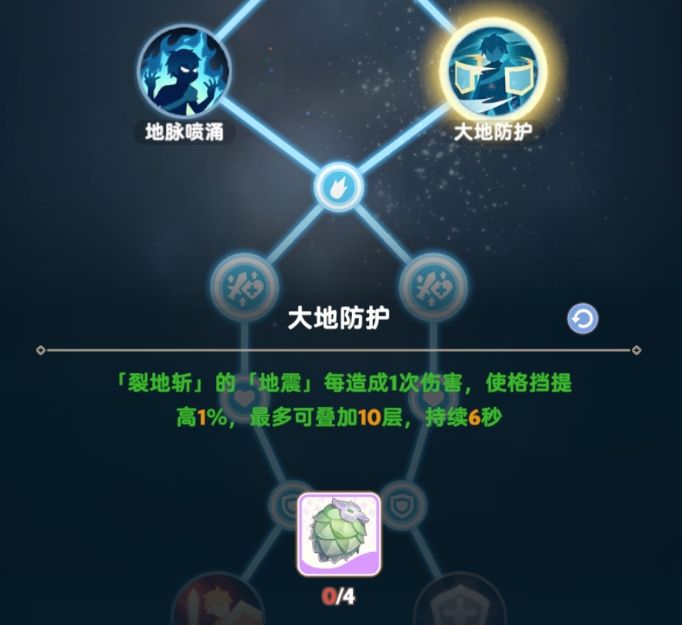 在触发地震时,同时提升能量回复(快速释放核心技能)并且提供10%的格挡率。