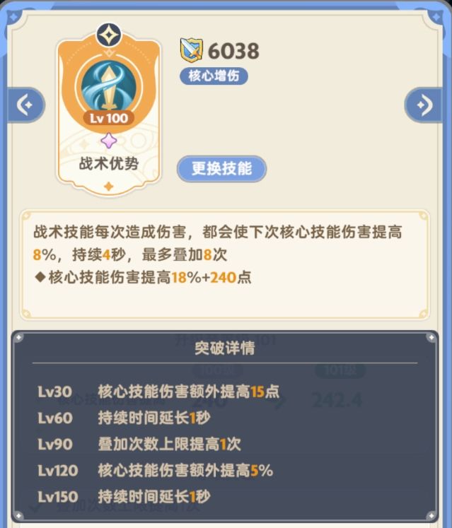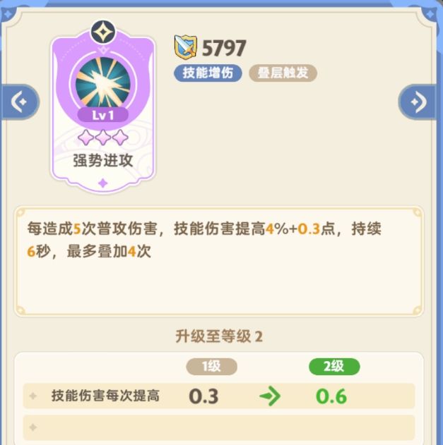 释放主动技能时,为核心技能增伤,这个技能可与【强势进攻】进行替换