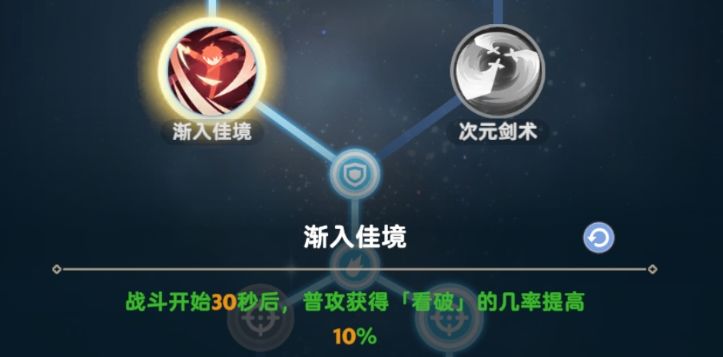 该天赋为剑士提供大量暴击几率,由于【看破】的最高层数为15层,该天赋最高可以为剑士提供30%的暴击率,非常之高,而这也是为什么很多人二转剑士开始叠爆伤的原因。