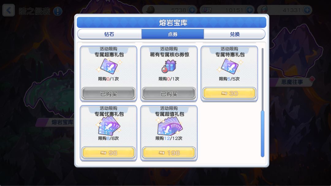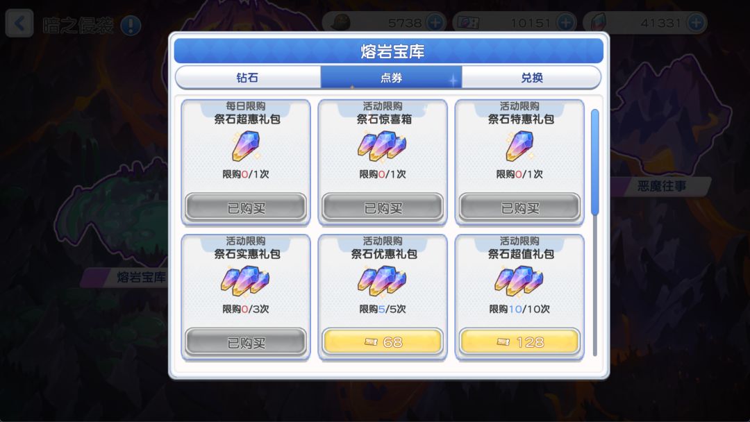 2、暗之侵袭活动中的熔岩宝库建议购买的是: