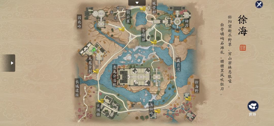 以上就是徐海地区全部的地理志胜景录位置了,希望这些位置能够帮助大家快速获得绑点,当然我们也更加希望玩家能够一边欣赏美景一边寻找这些特殊的环境位置,因为这里每一个风景点都是游戏为玩家准备的惊喜。