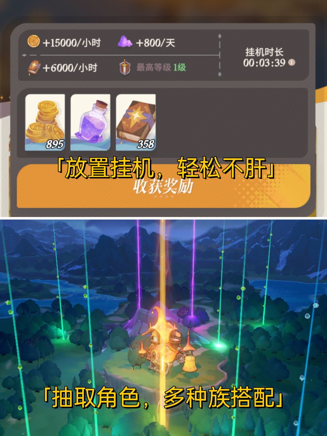 本质上还是卡牌策略,要考虑种族职业搭配和站位。挂机也有等级,提升挂机等级才能让挂机收益最大化。