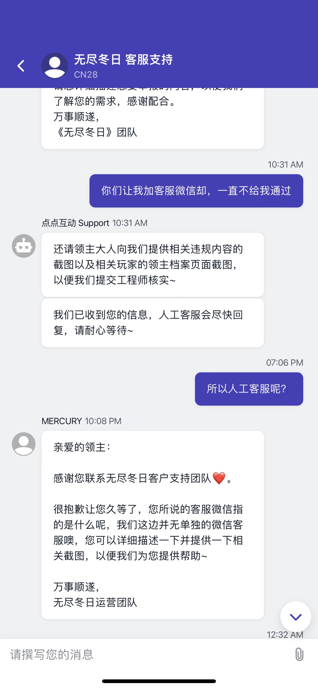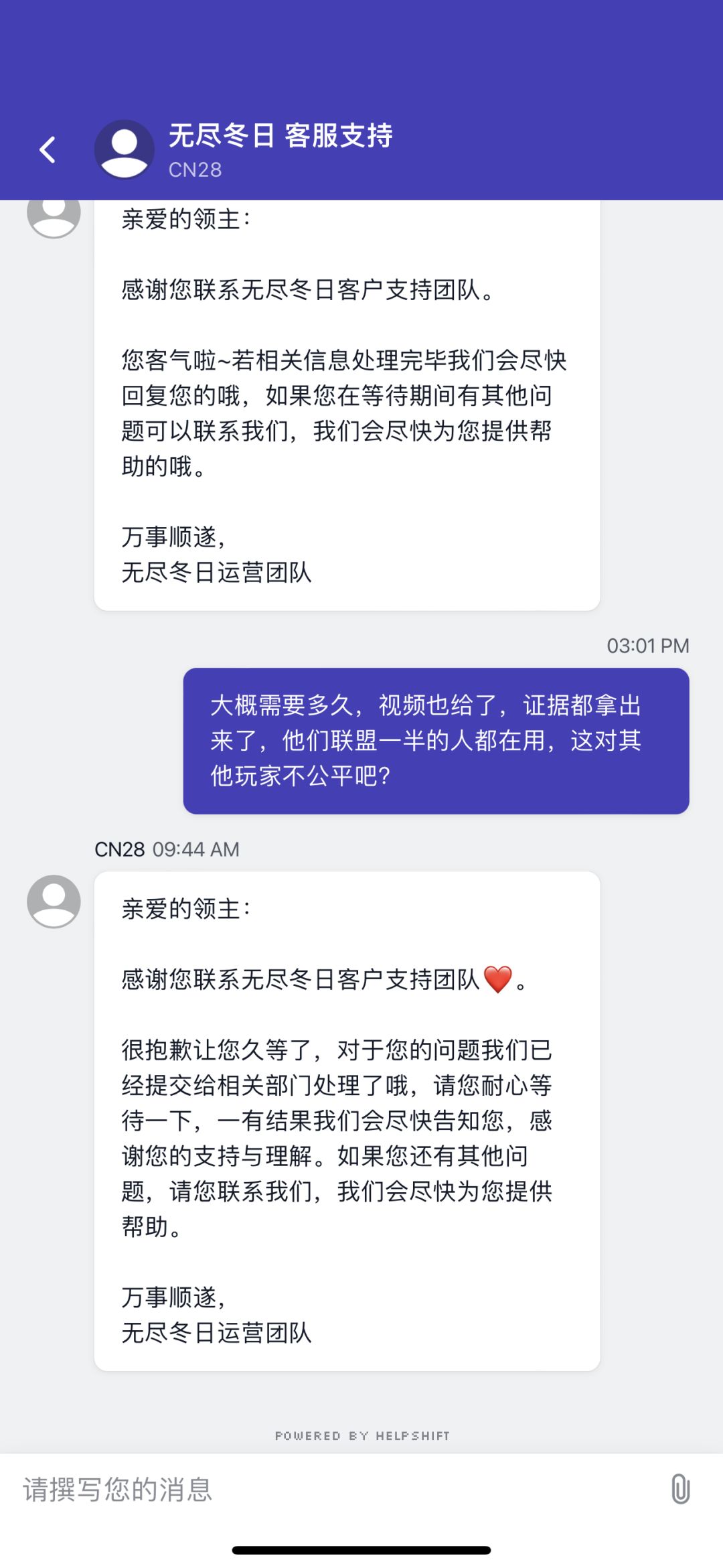 去举报,必须让我拿证据截图,拿了出来又是提交相关部门,提交了半个多月了也没有消息。都是他们内部号打普通玩家,逼氪,没必要玩这游戏,客服就是糊弄人的,几天回一次消息,然后还不管