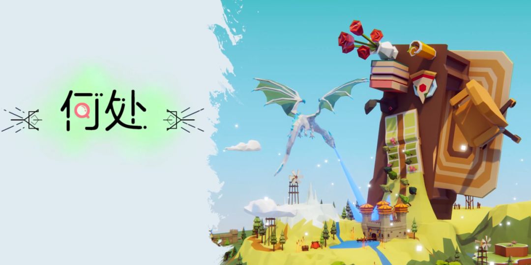 打开《何处》,就像进入一个奇幻的梦中世界:开机画面由比例不同的书、玫瑰、龙、游戏金币等立体元素构。《何处》制作人、Pita Game联合创始人杉杉介绍,游戏最早的世界观设定,是讲述玩家一个人踏上探险之旅、自己发现记忆的过程,灵感来源于游戏《艾迪芬奇的记忆》。