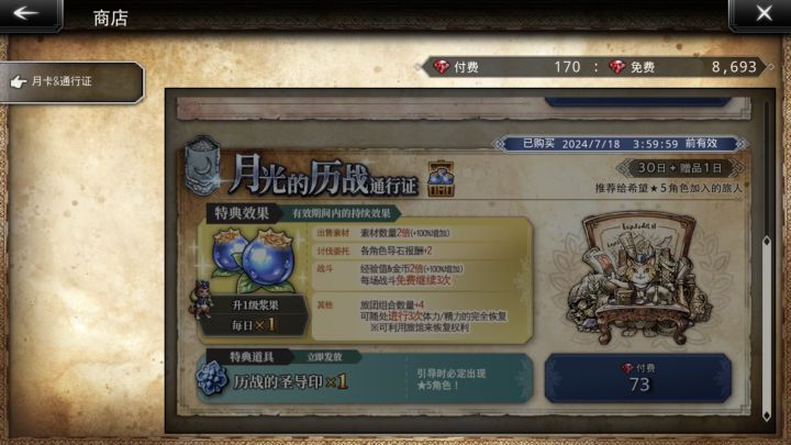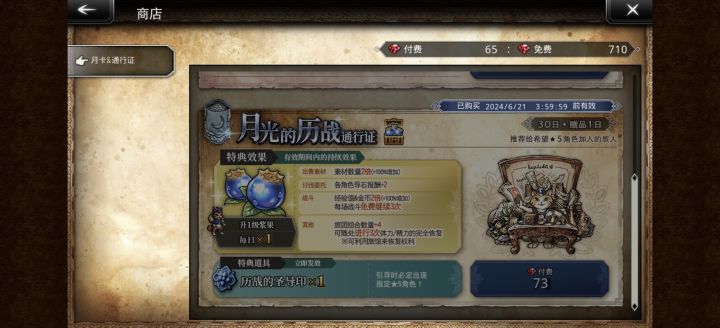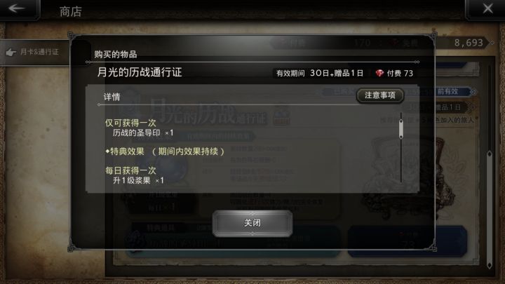 然后,今天第二次购买,最明显的示例图片里没有完全没写这个历战的圣导印只有第一次购买有,后续购买是不会再给的,所以还是会有不少人为了历战圣导印在第二个月继续买。而购买细则里所谓的“仅可获取一次”对比下一行每日可获得一次浆果来看,也非常模糊,可以被模糊理解为历战圣导印是每次购买通行证后仅可获取一次的意思。总之1.首页图片完全不显示这个历战圣导印第二次及以后购买通行证不会给,2.文案不写清楚“仅可获取一次”是指“仅第一次购买可获取”,导致可以被模糊理解为每次购买仅可获取一次,这两点这真是完完全全的故意模糊、误导用户消费,网易你们是在这种小钱上也要处心积虑了吗?