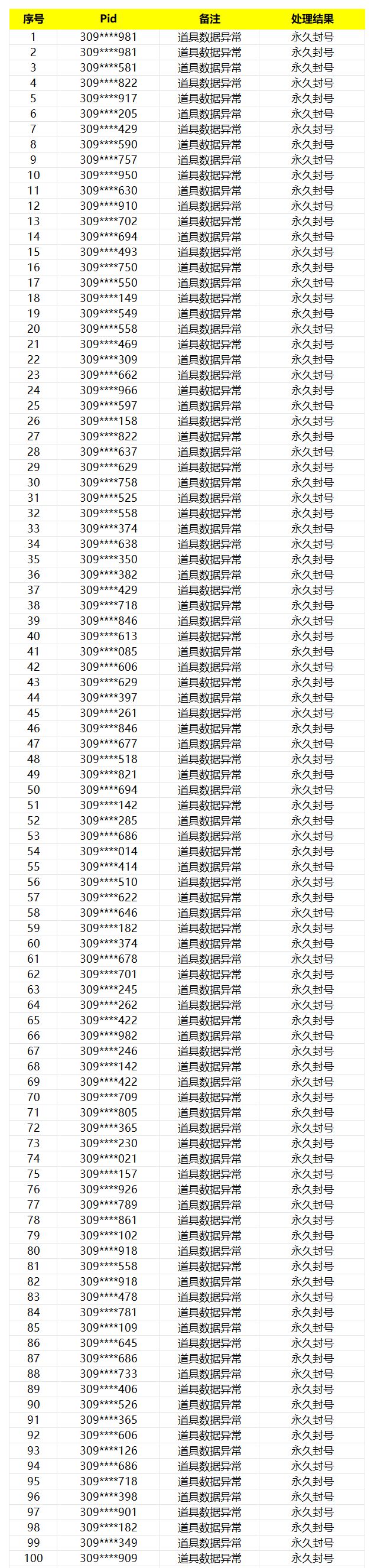 本次行动针对部分渠道账号进行核实,从严查处游戏内数据异常行为,市政工已收集了相关违规账号信息,并对这些玩家进行了永久封号处理,将于此公告中予以公示。