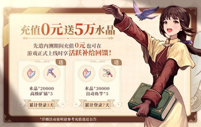 「先遣内测」期间充值0元并满足活动条件,即可在游戏正式上线时享受活跃补给回馈。