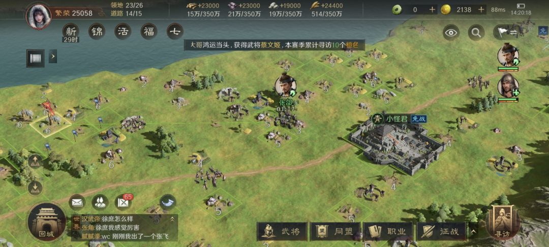 小地方资源确实不多,但好在几个邻居都没刷到想要的角色,两小时后地盘都归我了(笑),很有趣,后续本区进新人还有可能位置定到你附近,有一个甚至挨着我刚搭起来的营帐。