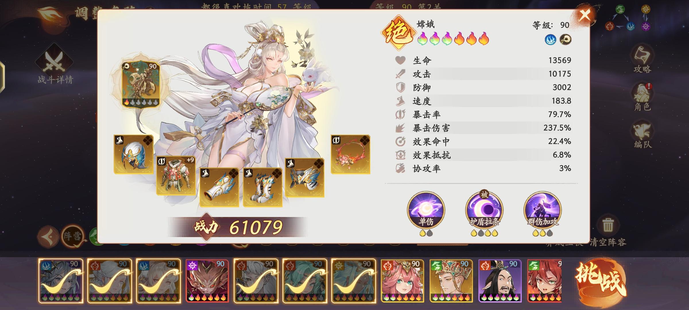 大闹天宫第九层,三只小熊。给大家参考,没过的可以看看。嫦娥速度比电母慢,地藏速度比嫦娥和白骨精快一点儿就行。孔雀第一回合开见CD,白骨要求就是一刀打出熊的复活甲就够了。嫦娥速度只要第二只出手的蜘蛛快就行。能更快当然最好了。