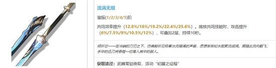 1、暗主的首选武器可以考虑常驻五星武器千古洑流。它的副词条提供暴击率,武器被动也会提供12%的大招充能效率以及12%的攻击力增益,可以大大提升暗主的输出能力。