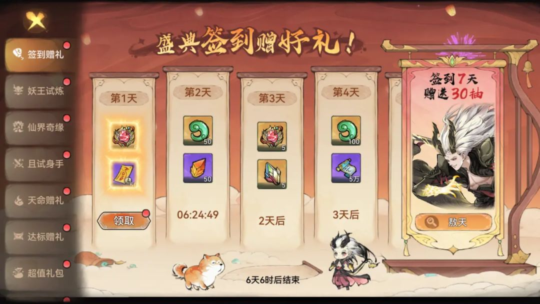 活动一:七天签到领30抽!