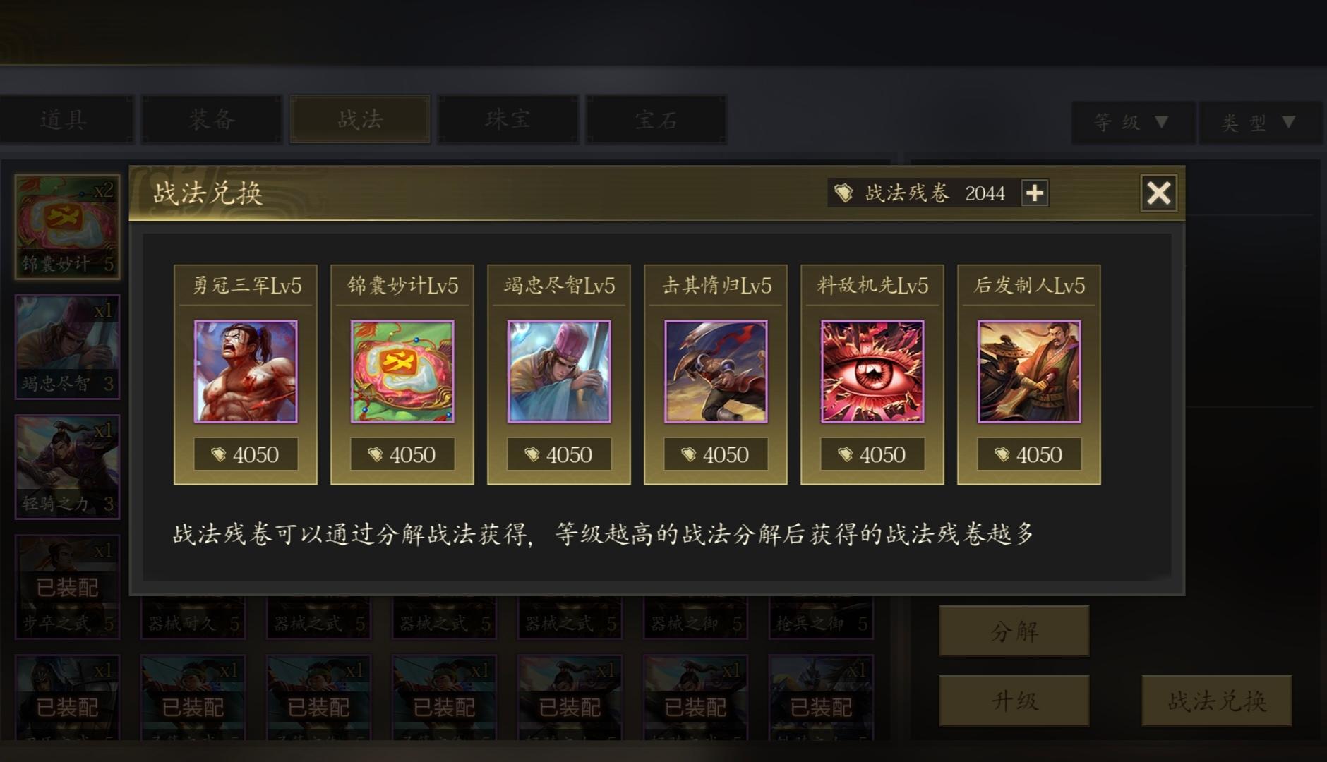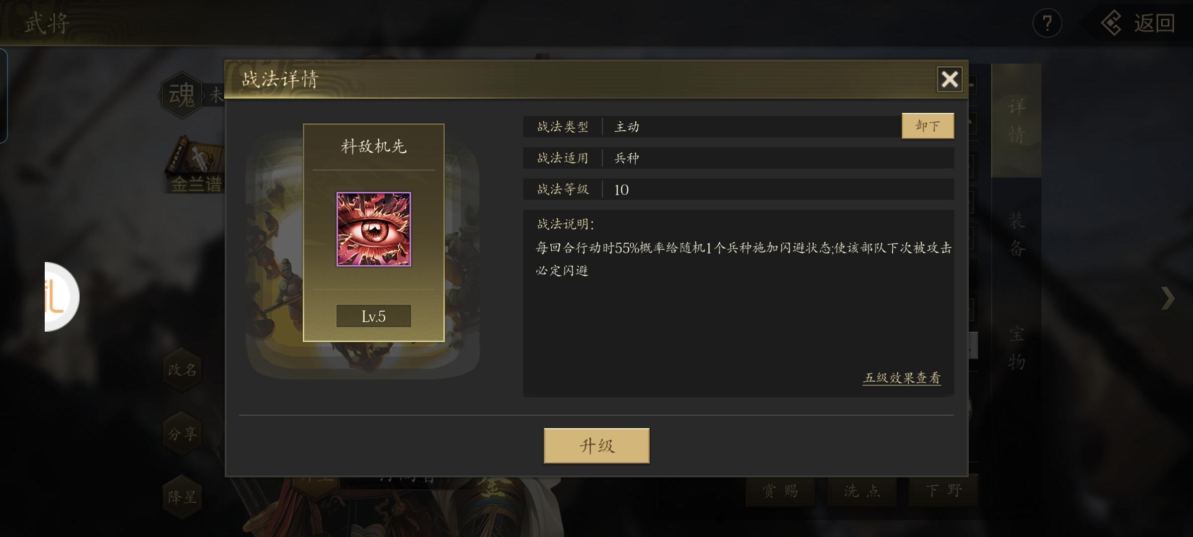 当前版本的TapTap《军令如山:王者之心》,为玩家们总共准备了六个可以利用残卷兑换的特殊战法。在我个人看来,战场上最有价值的,莫过于料敌机先。因为满级的料敌机先,具备高达55%的概率随机给我方一个兵种施加100%的闪避保护。