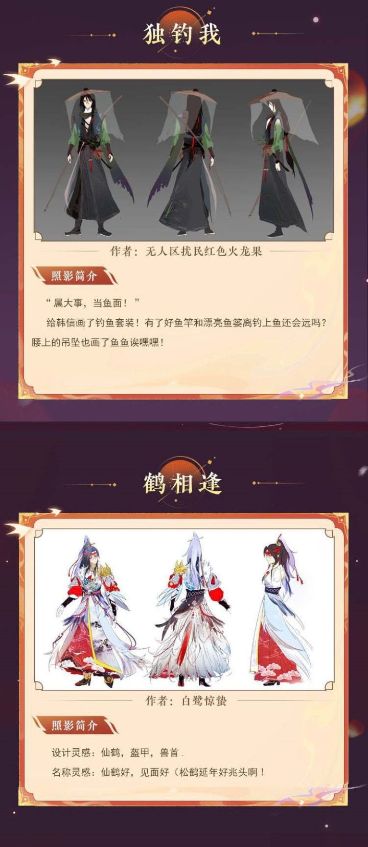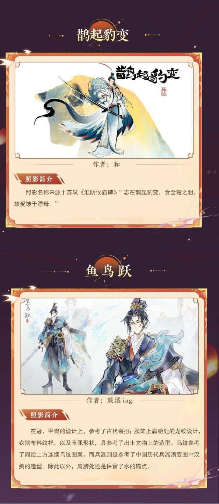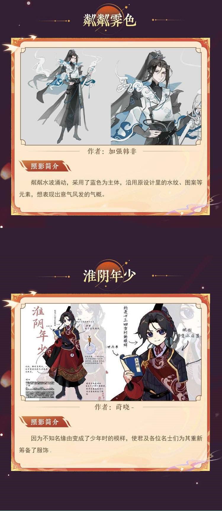 本次投票时间至7月14日结束,每位使君可以选择1-3份作品进行投票,最终实装的照影将由投票排名和官方评审团共同决定,使君大人快来为喜欢的作品投票吧~