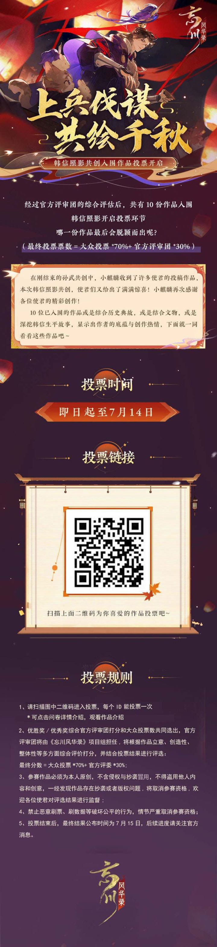 韩信照影共创活动投票环节开始啦!