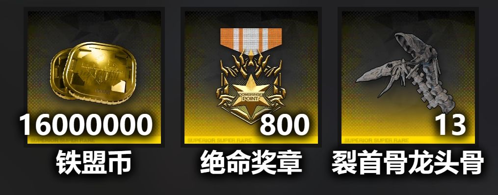 铁盟币*16000000+绝命奖章*800+裂首骨龙头骨*13