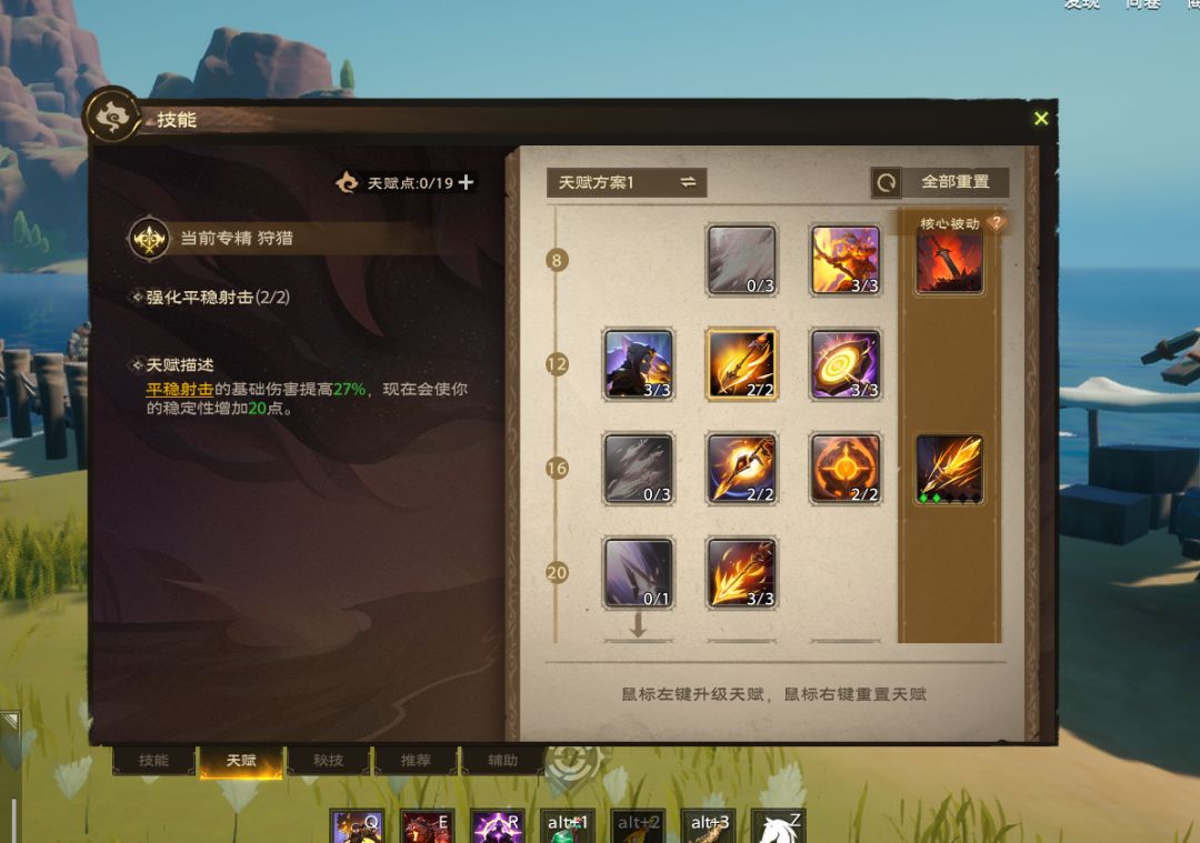 魔能:平稳射击X2→猎手之心→腐蚀之箭→迅捷连射→魔能射击→平稳射击