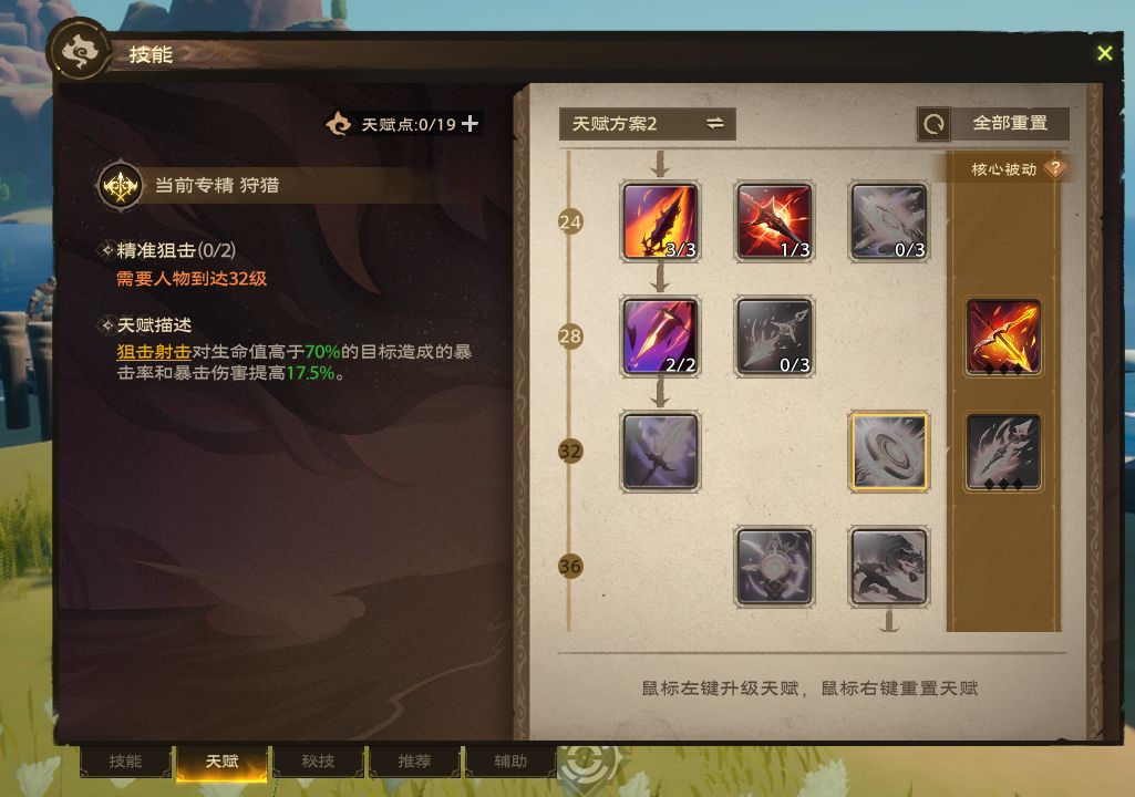 狙击:猎手之心→腐蚀之箭→迅捷连射→狙击射击→平稳射击→扩散射击