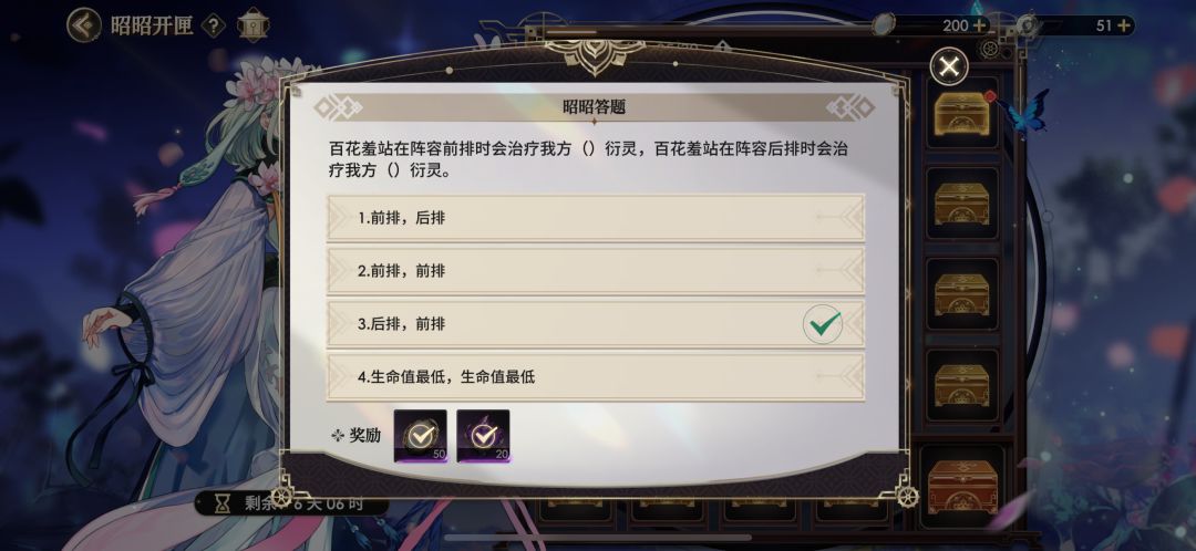 百花羞站在阵容时会治疗我方(3.后排)衍灵,百花羞站在阵容后排会治疗我方(3.前排)衍灵