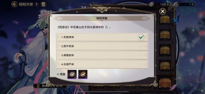 西游记中花果山位于四大洲中的(1.东胜神洲)