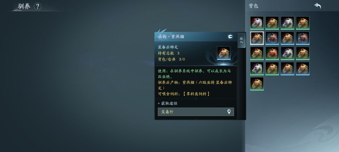 第二步有一个马商,和他对话,拿《套马绳》物品,一个就可以。