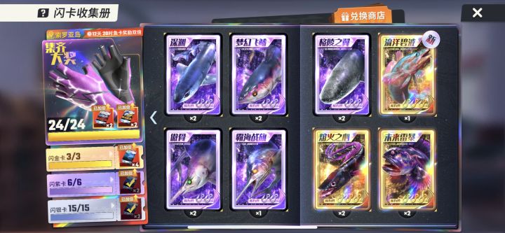 3、藏宝图优先级远远高于10体力钓鱼骨。我最后一条“流洋碧波”钓了十条左右,最后还是在藏宝图里面出来的,藏宝图闪卡肯定有概率加成的。且我的“每一张”闪金卡都是藏宝图出的,闪银卡可能只有一张两张是10体力钓的,大部分主要也都是在藏宝图。