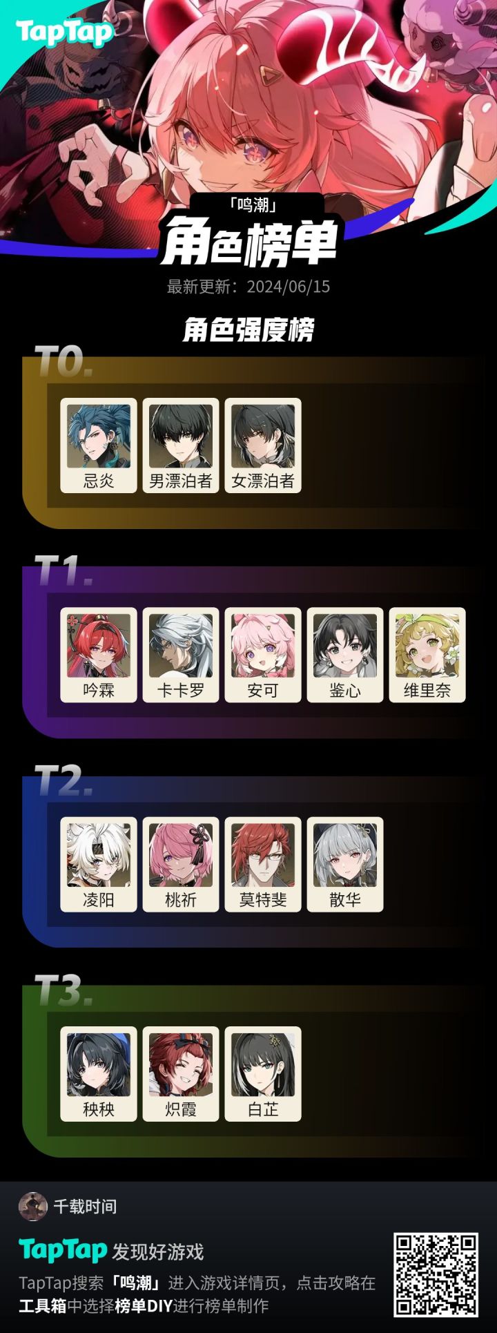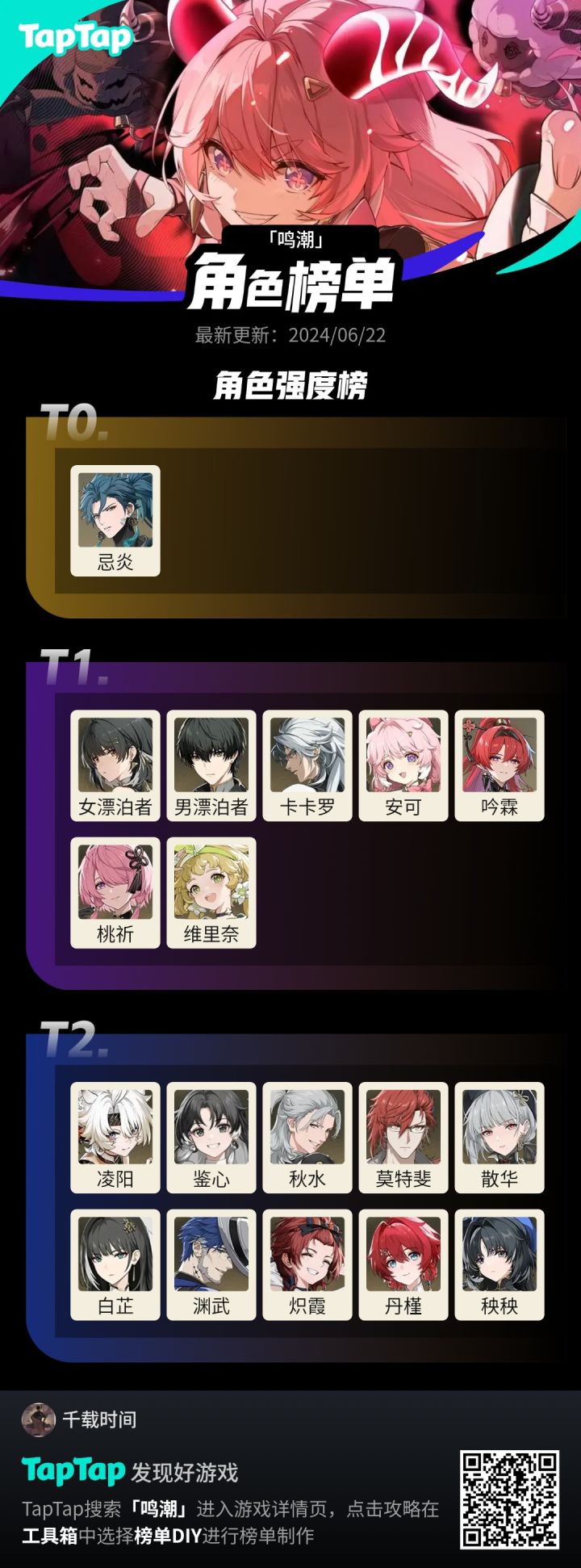 其余角色强度若考虑其他的话强度另算。就比如桃祈盾量能用虽说没鉴心高,但伤害比鉴心高(前提是鉴心的共鸣链【共鸣链:相当于原神的命座】不高)综合起来所以t1。