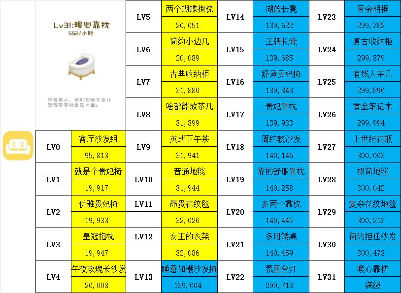 ❗❗❗第三,小洵来带大家走进“海风之家”,看看咱在不同等级、不同家具升级需要多少钞票。