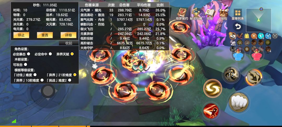激流太简单了就不多说了:看图上伤害组成,契约石吃威力,元气弹吃天赋伤害减免等。具体天赋技能符石直接游戏点开看就行。