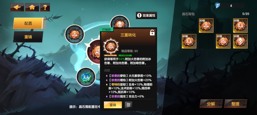 7.这赛季需要选择一个元素进行攻击转化结合晶石转化实现伤害最大化,玩双元素就走单向转化,玩三元素走双向转化。