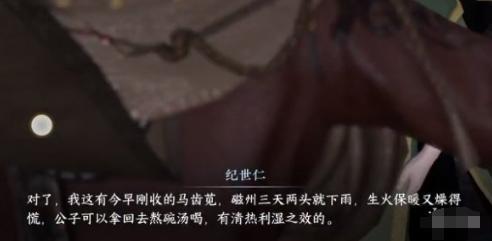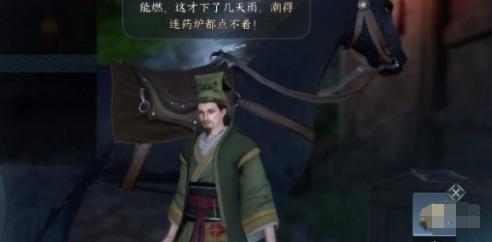 2、和他对话得知因为下雨纪大夫没有干燥的草木灰点燃药炉,将一份草木灰交给纪世,帮他点燃药炉。