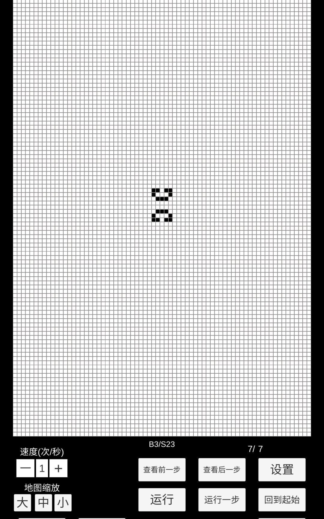1.锯齿(可生成脉冲星)x = 7, y = 9, rule =B3/S23