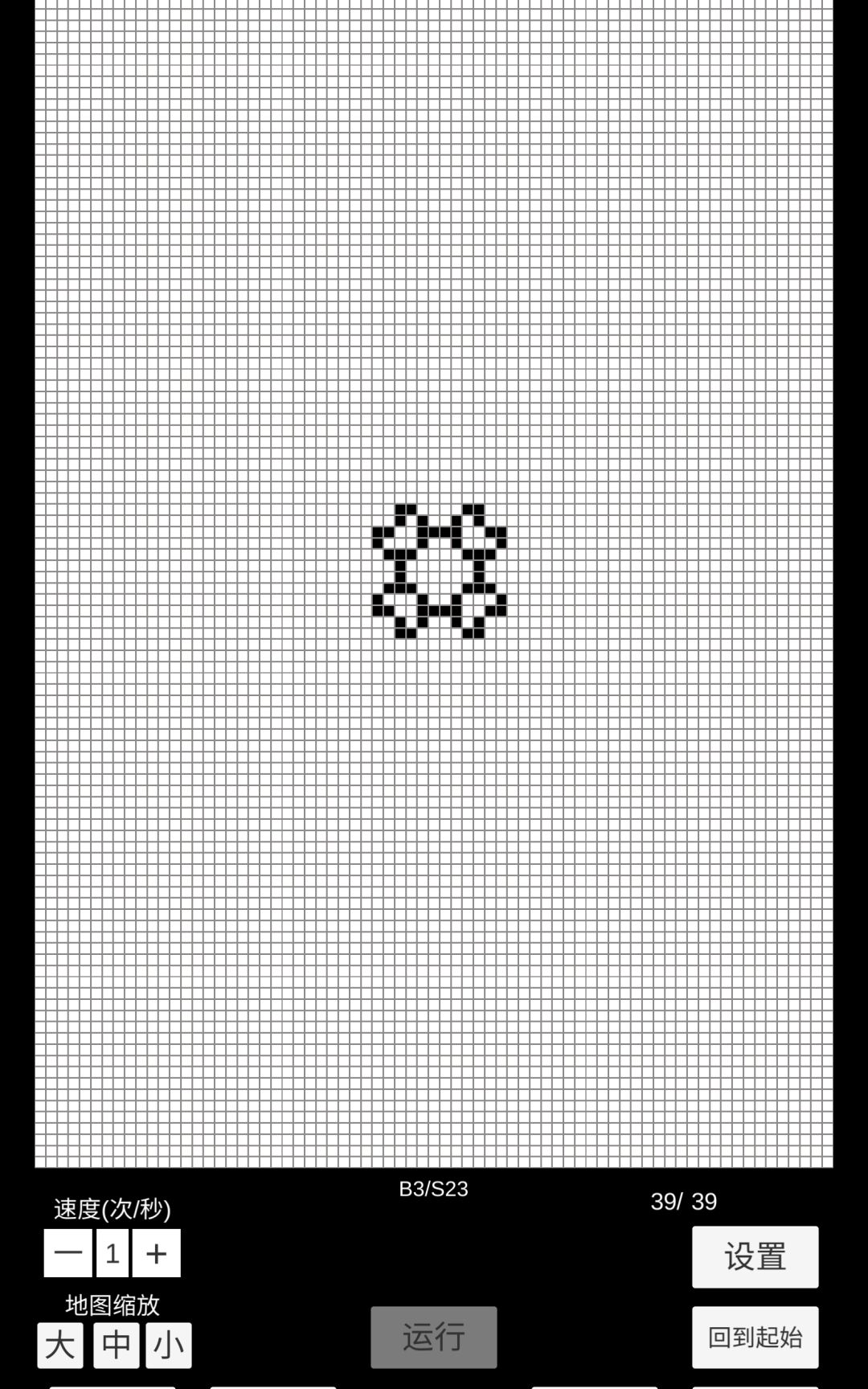 闲来无事,摆了个锯齿图案(最终生成了脉冲星图案)。进行到一半,发现似乎可以用两个U型演化出来,就在想通过U型不同的摆法,能够生成什么有意思的图案。经过一点点的摸索,发现在背向相隔四格的情况下,可以生成稳定的震荡图案(我将其命名为灯盏)。在两排三个格子中间相隔俩行的情况下,中间会有闪烁图案。有意思的是,脉冲星初始图案每一部分与其他部分都相隔一行(列),这让我觉得有模仿的可能性,经过一些试错之后,摆出了类似花瓣的闪烁图案,我叫它花灯,如果有更好的名字也可以提出来。