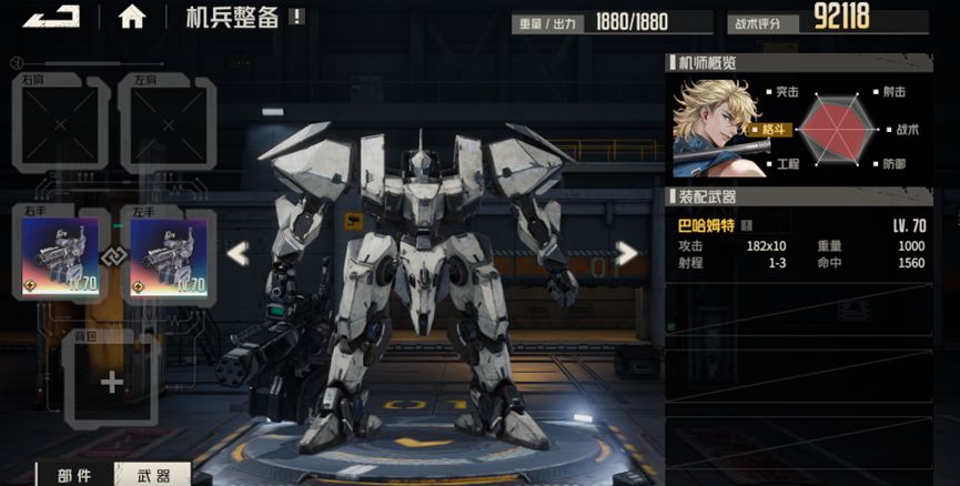 当下重型机兵大多数与特定机师相关联,只有在被这些特定机师驾驶时才能发挥全部性能。例如金刚,只适合主打协力的突击机师(威廉、艾米莉)使用;又如塔纳托斯,只适合容易造成范围伤害能力且对ap需求较大的机师(绘梨沙)使用。