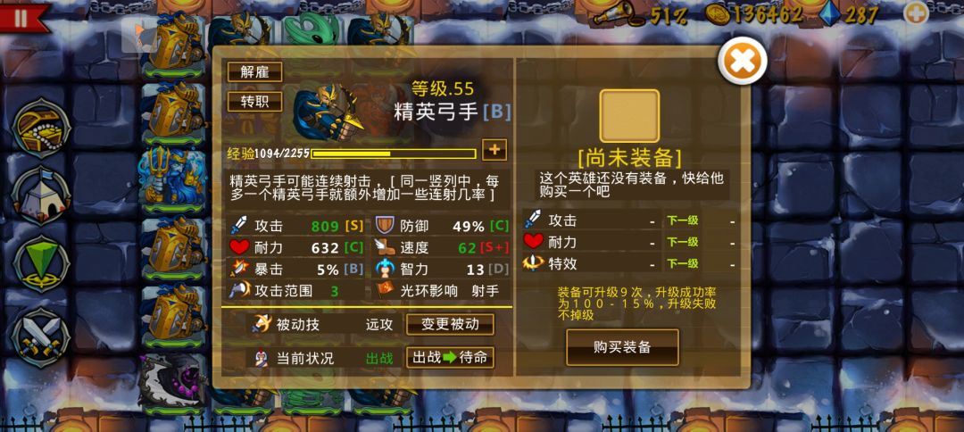 步骤四:攒够转职的钻石只需要一两天,后面就是正常的打关卡,在40级前尽可能的招募到一定数量的优秀肉盾和精英弓手。