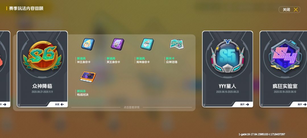 在这个赛季上线之前,我们告别了柠檬岛,见证了彩虹岛新的打卡点就是众神浴场。伴随着S6赛季众神的降临,一种全新道具出现了每一位神都有属于他们自己的特殊能力:——而诞生于S6赛季的身份卡,就是他们能力的展示,提到做身份卡的初衷,策划是这么说的:当赛季越来越多,我们发现每个赛季一直在增加新玩法内容。我们不想放弃每个赛季带来的玩法新体验,但需要解决道具选择过多及学习成本高的问题,最好还能在这个变化中升级一下扮演感。结合众神的能力为他们设计独有的技能,肠肠们只需认知扮演的角色与他的能力,这是官方全新的尝试。希望肠肠们在这种强扮演感和丰富道具策略之间做选择!这就是第六个赛季——众神降临
