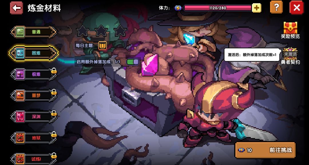 ps:更新后将计算勇者现有的小秘境通关层数,解锁对应难度关卡