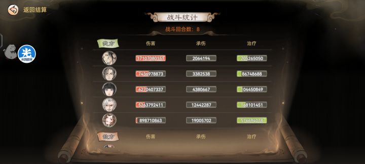 最后说明一下战斗统计,由于蛊修的红天命为结算所有的持续伤害,其中包括了主c的燃烧效果,所以在统计图中三个战力相差大的蛊修伤害却区别不大,他们造成的伤害量有很大部分来自老李,而老李的主要伤害统计为烈阳的输出。