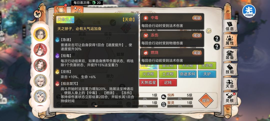 这是我的一种省资源山海打怪玩法,要主玩蛊修可以参考百毒经。我没有浪费过多资源去拉,三个蛊修都是五行蛊,天命都不咋样,我把他们当做纯辅助,吃段时间的山海资源,关闭切磋,从此当好一个囤囤鼠。