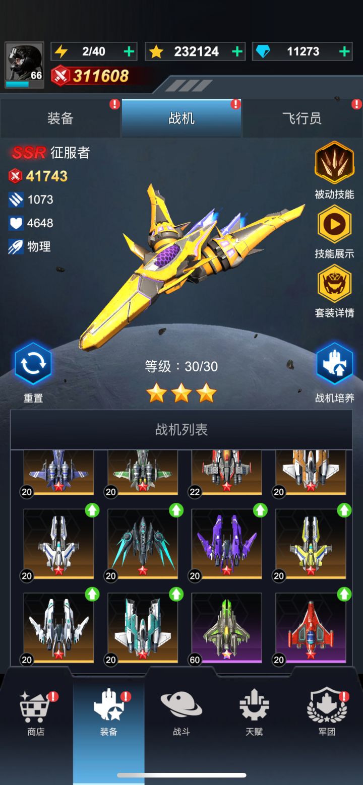4.飞机刚开始升级到红1星20级就可以,这样全队飞机属性都会增加,战力和拉力提升比较高,后续合金多的情况下,把等级高的飞机升到60级。