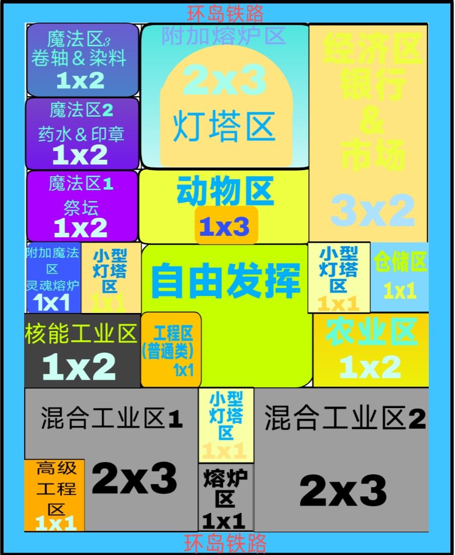 此贴的岛屿规划为全物品存档(虽然我不知道浮岛的全物品存档有啥意义,但是既然没有那我就设计一个),目的是在无需制作任何新建筑的情况下能够量产所有物品,所以主要追求效率,美观其次。另外,虽然此贴是固定蓝图,但思路是灵活的。