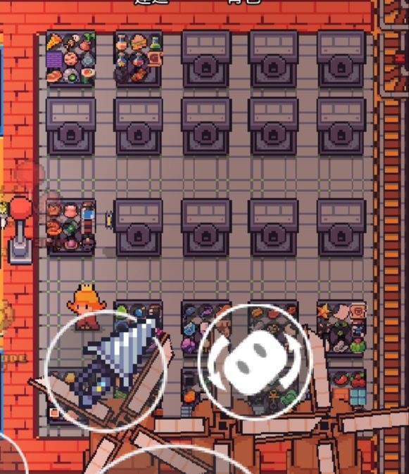 8个烹饪锅正好对应8道可制作料理,熔炉一个用来烤鱼一个用来烤面包。风车的话自然越多越好,为了不挡路我少放了点,动物诱饵是用来引牛然后挤奶的。