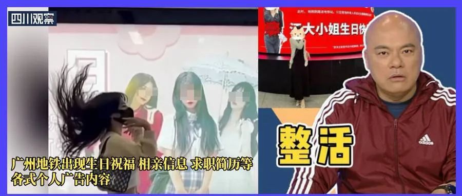 当时我随手关注了光头主持人卢俊宇。这两天上网冲浪的时候,又给我推送了一条“广东地铁允许个人投放广告,结果被人玩坏了”的事情,也挺乐子的。