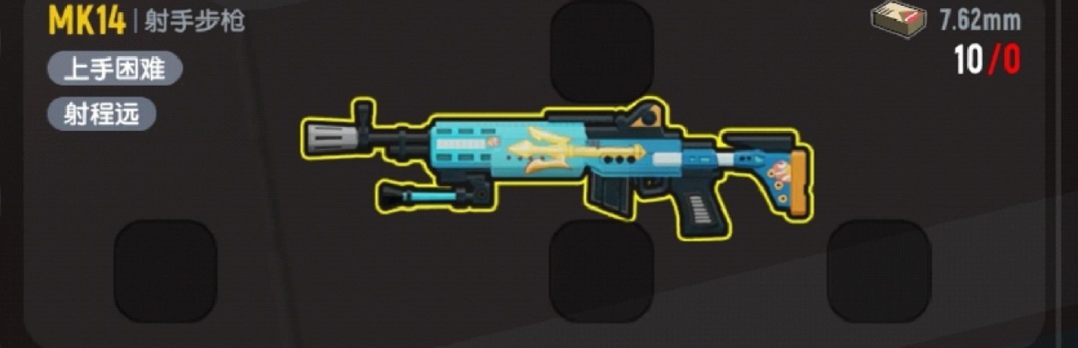 作为点射家族中唯一一把空投武器,MK14的伤害高,射速适中,拥有自动模式这一情况也大大提高了出场率,且能做到近程秒人。但经过两次削弱后MK14的双后座较大、下坠有点危险,弹道规律不太好控,高倍镜上手难度有所提高。不过请肠肠们放心,由于MK14拥有枪架,趴下即可打开,因此趴下状态的后座会有所降低哦~