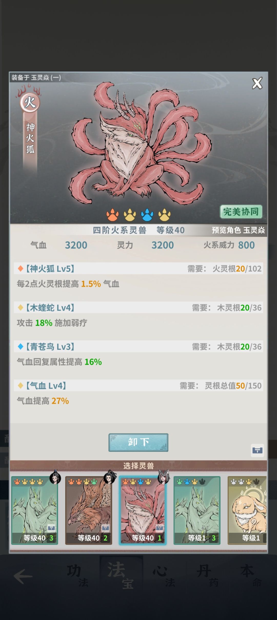 以后血量和抗性足够的情况下,考虑逐步换一些攻击性的心法,使狐狸攻击力更强。