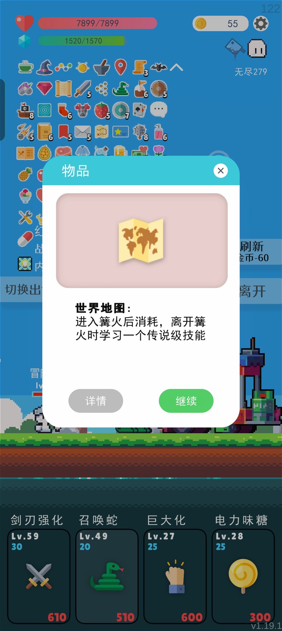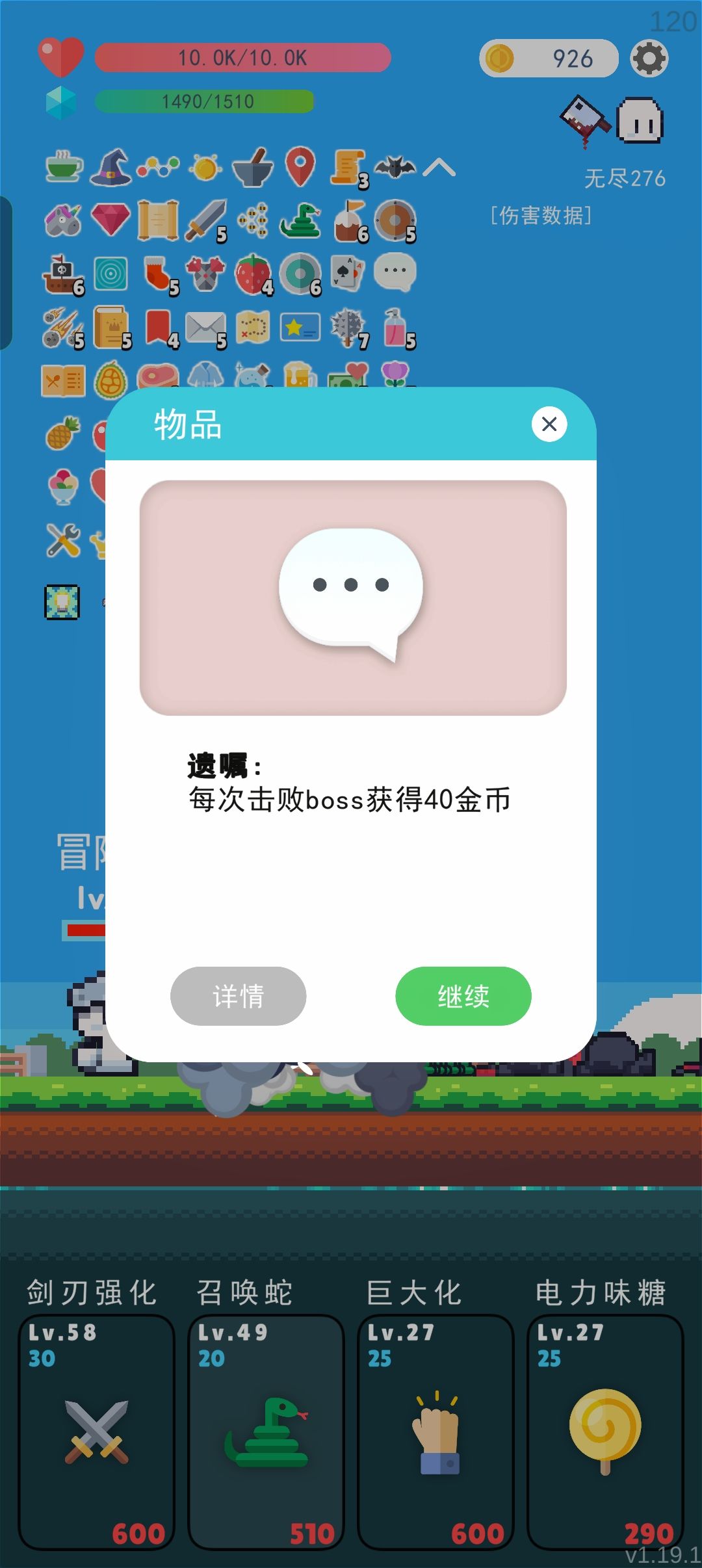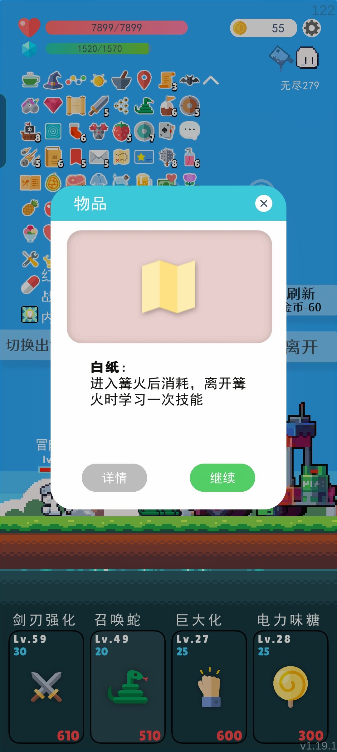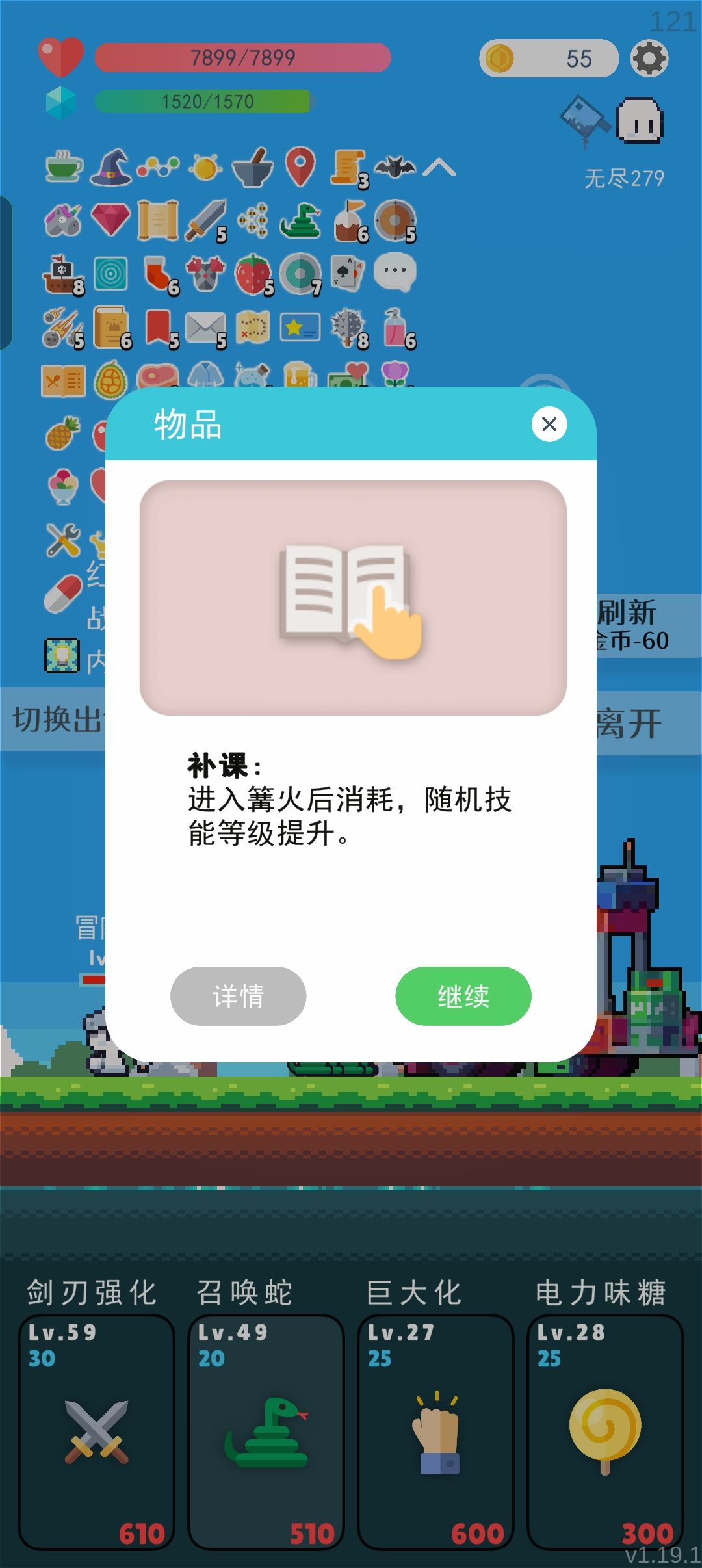 提升技能或血量,没有需要的在100关前选择跳过