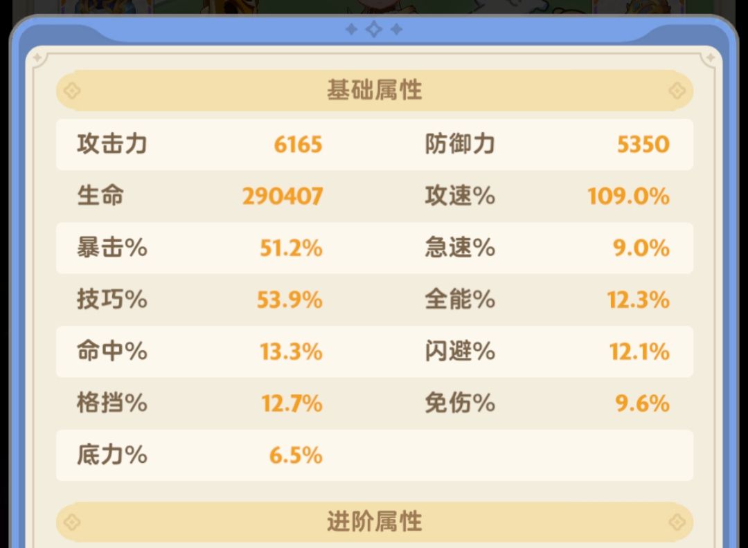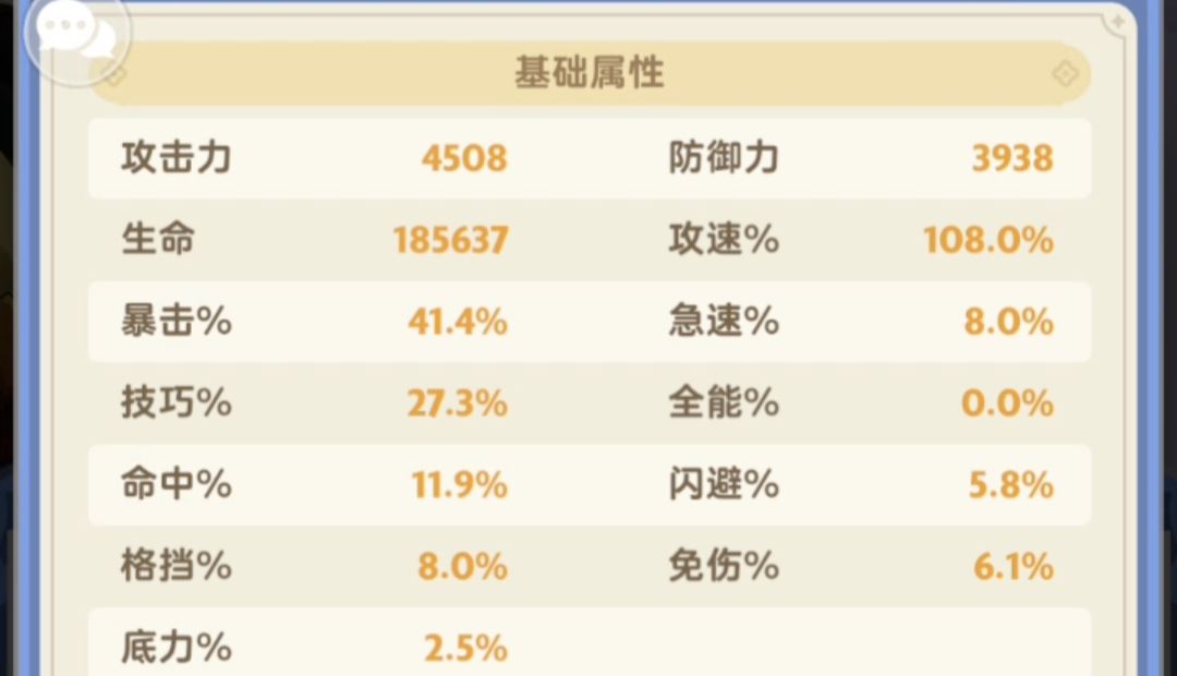属性目标40%暴击率+20%技巧