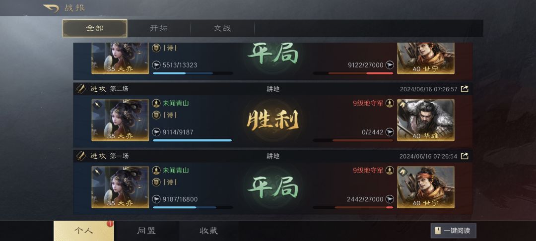 反观开荒t0级别的桃园,有相当部分的桃园都在一万七上下这个兵力攻克了九级地。造成这种差距的原因主要有两点,一是刘备带来的高额续航,二是关羽张飞双核心输出阵容的伤害总量是要高于孙策的单核心输出的。